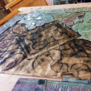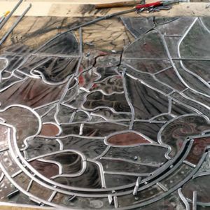 Once all the pieces of glass are laid out, the broken pieces are replaced and any repainting is carried out if need be.